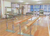 社会復帰・自宅復帰されることを大前提として、一歩一歩回復に向けて共に治療に励みます。リハビリテーション室(201.4平方メートル)内には、各種物理療法機器(温熱・電気・牽引等)を備え、歩行・車椅子での移動練習が行ないやすい様、広いスペースも確保し、安全性に配慮しながら1対1の治療を行っています。また、患者さん1人1人の生活環境を考え、畳スペース・キッチン等を設け、より良い治療が提供できる様にしています。